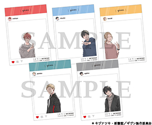 特典として、原作者のキヅナツキが描き下ろしたチェキ風カード(全6種/ランダム)が配布される。