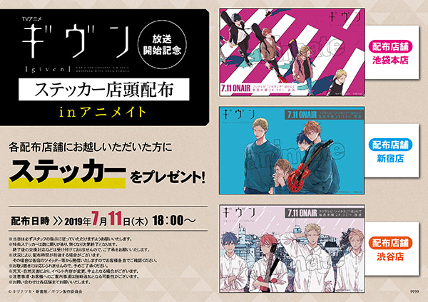 「ギヴン」オンリーショップグッズ & 購入特典情報公開!